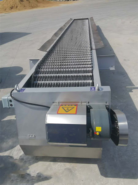 格柵機(jī)工作原理 它主要由卷?yè)P(yáng)機(jī)構(gòu)、鋼絲繩、耙斗、鋼絲繩滑輪、耙斗伸長(zhǎng)裝置、機(jī)械力矩保護(hù)、運(yùn)動(dòng)驅(qū)動(dòng)、地面固定軌道和移動(dòng)驅(qū)動(dòng)定位裝置組成。整機(jī)的定位和清洗作用、耙斗的升降、耙斗污垢的開(kāi)啟和關(guān)閉、耙斗污垢的刮除與固定安裝鋼絲繩牽引耙斗格柵除污機(jī)相同,僅上架與下架分離,上部框架全部設(shè)置在移動(dòng)驅(qū)動(dòng)上。當(dāng)用筆劃開(kāi)關(guān)控制去污時(shí),機(jī)架可以移動(dòng)到需要去污染的格柵位置。當(dāng)上下齒條對(duì)齊準(zhǔn)確時(shí),耙斗可順利去污。對(duì)于寬柵格,除污機(jī)移動(dòng)齒耙的有效寬度,并繼續(xù)去污,直到網(wǎng)格表面的污垢被清除,網(wǎng)格前后的水位差達(dá)到正常值。對(duì)于多通道分布式格柵,在對(duì)一條溝格柵進(jìn)行去污后,除污機(jī)移動(dòng)到另一條溝,并繼續(xù)去污,直至所有溝渠格柵柵面污物清理完畢,柵前后水位差達(dá)到正常值時(shí)為止。